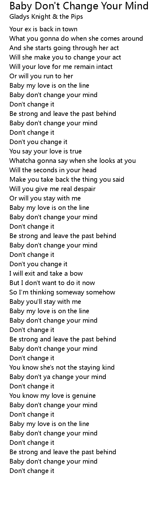Baby i dont mind lyrics. But if youre looking for fast love If thats love in your eyes Its more than. We present you the lyrics and the translation of Baby I Dont Mind a news song created by Sunni Colón taken from the album Satin Psicodelic. Baby I dont mind.